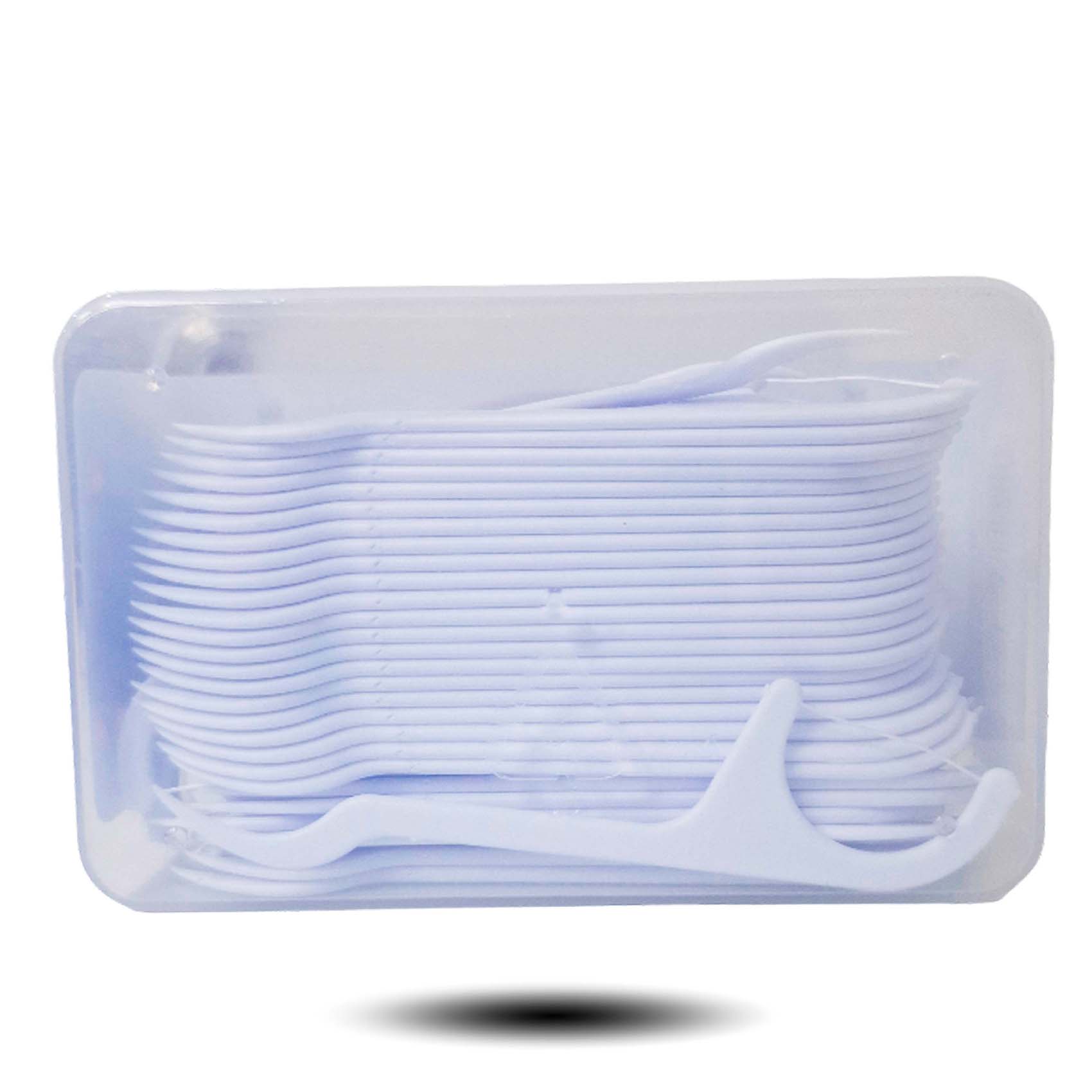 – 50 waxed floss picks with ergonomic handle.