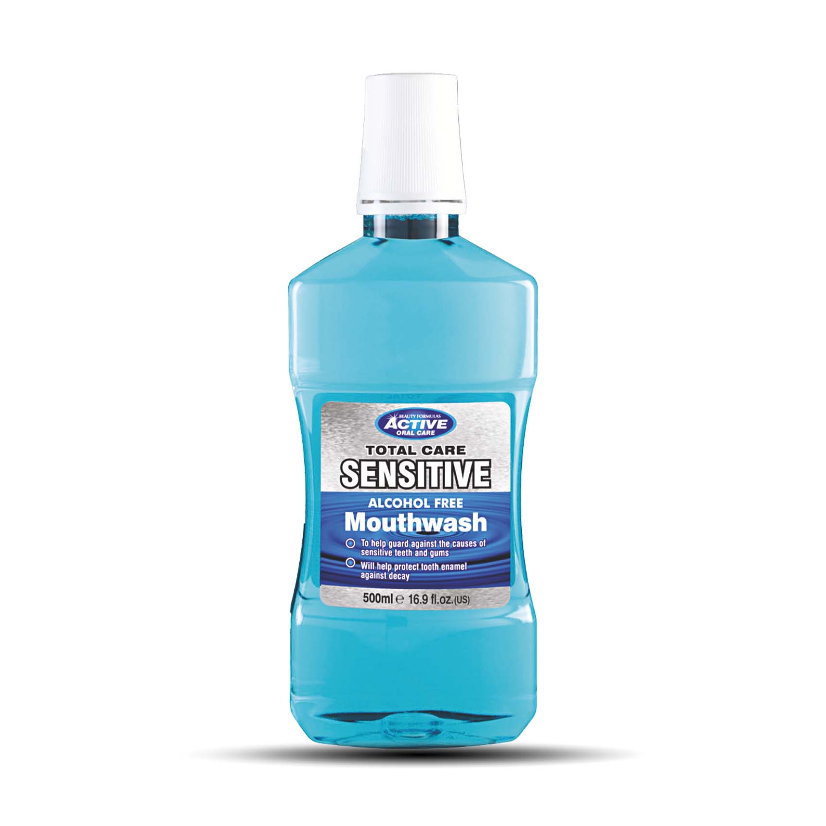 Active Sensitive Total Care Mouthwash 500ml helps protect sensitive teeth and gums. Ideal for enamel care, it freshens breath and prevents decay.