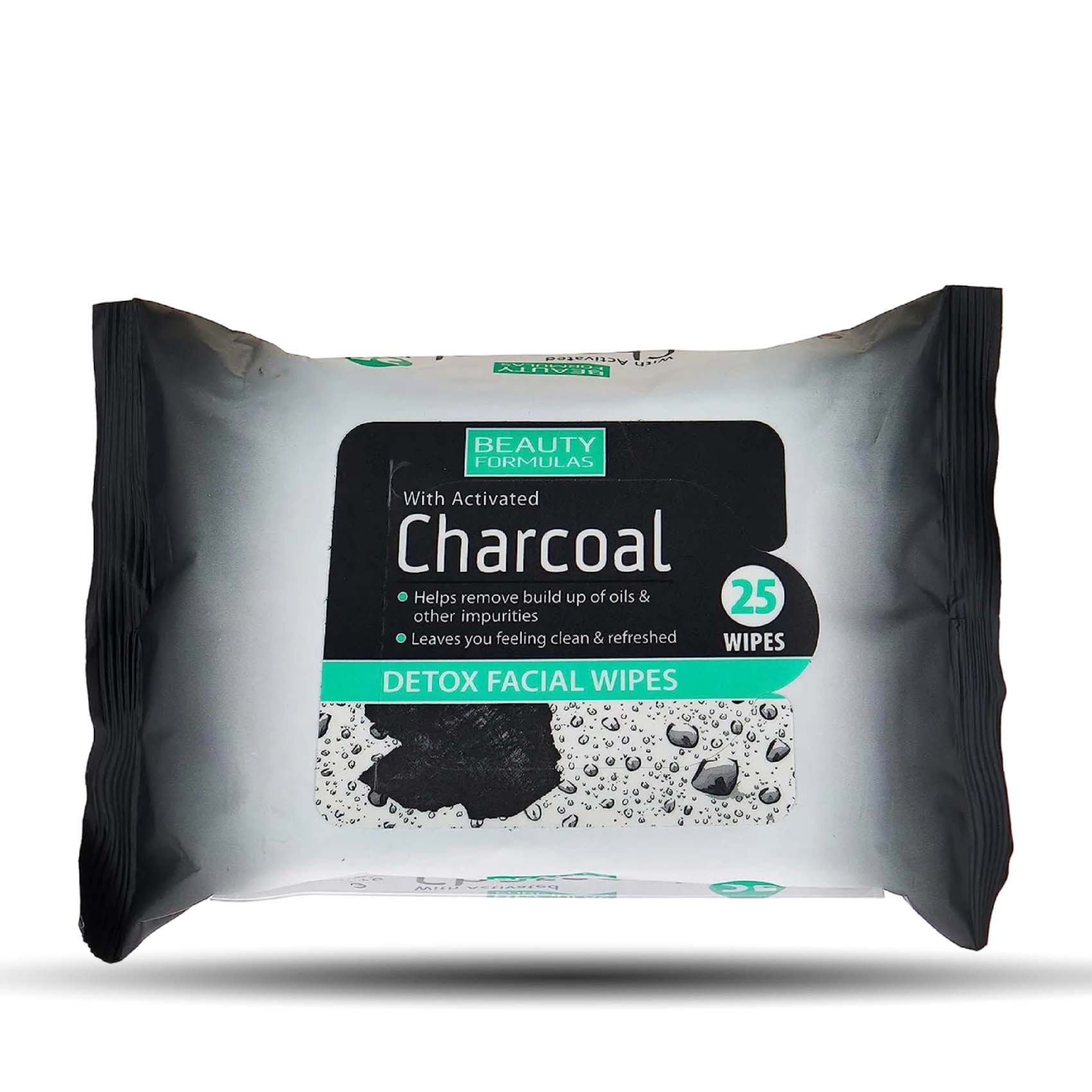 - Pack of 25 facial wipes infused with activated charcoal.