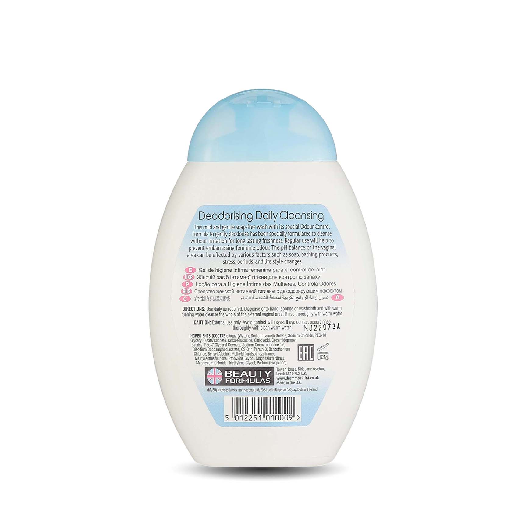 – 250ml deodorising intimate wash with odor‑neutralizing tech.